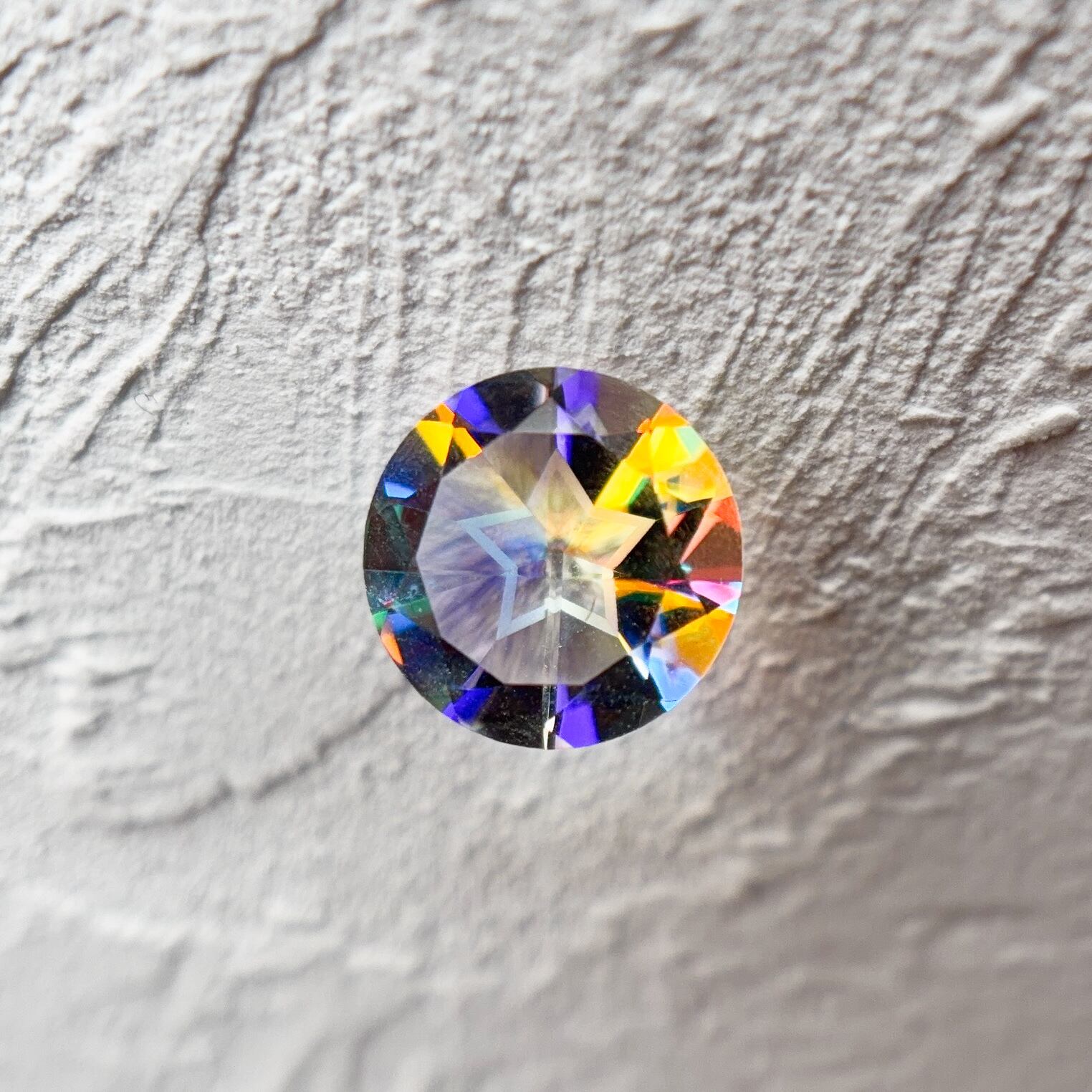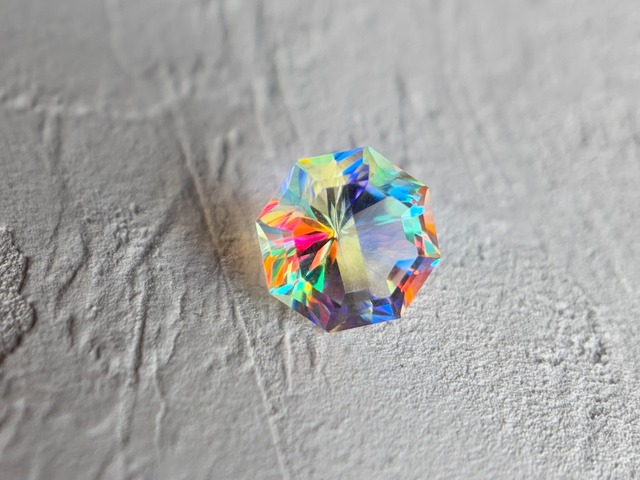 yuiaglassが製作した硝子の宝石の素にシミズ貴石さんのオリジナルカットを施してくださいました。