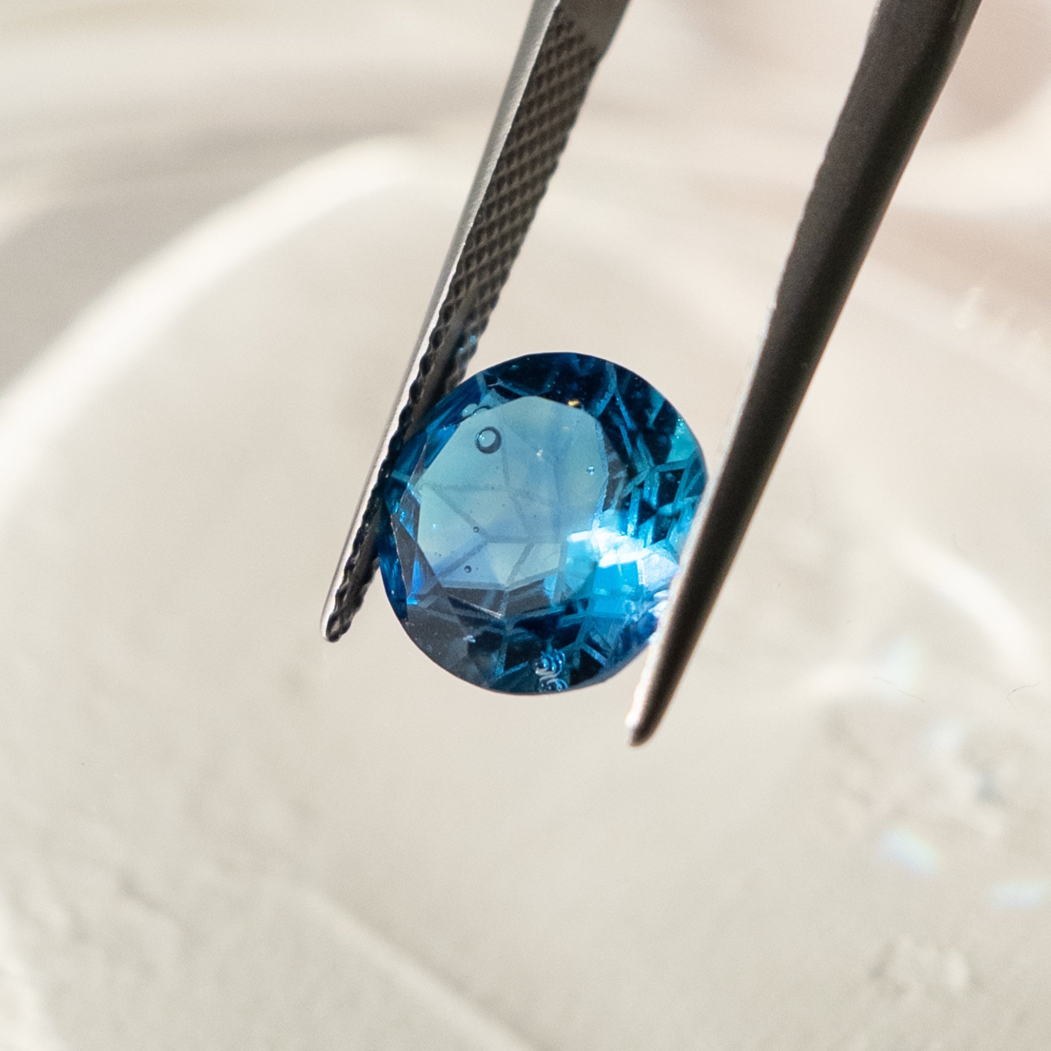 お仕立て代行は、あらかじめ量産されたオリジナルの空枠に、当店がガラスルースを留めてお仕立てさせていただきます。枠の形やサイズは決まっており、ルースに合わせた個別の調整は行いません。