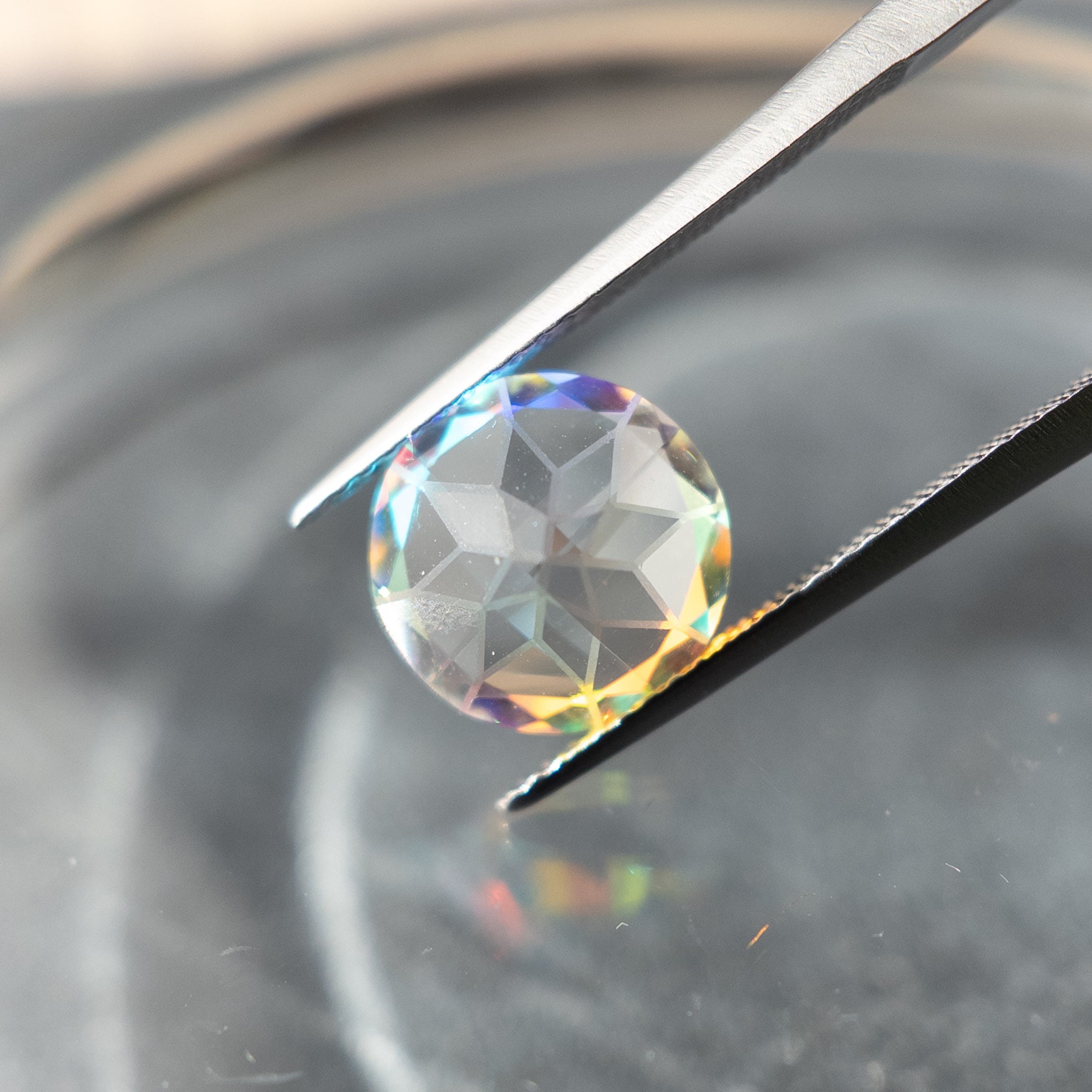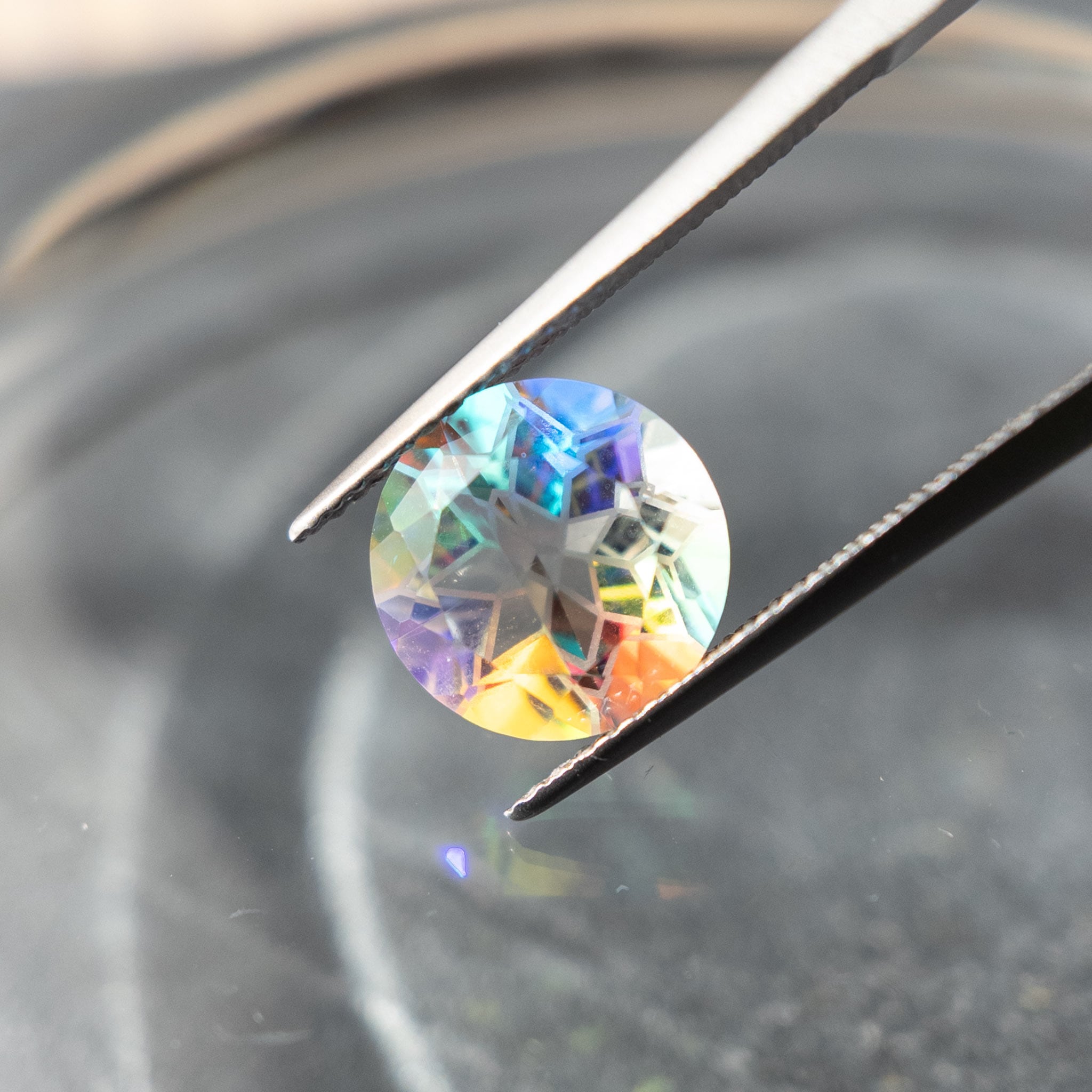 まるでプリズムのように、虹色の輝きを楽しめる一点ものです。
