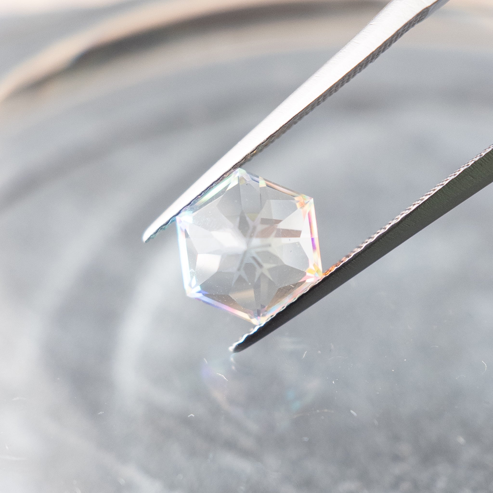 まるでプリズムのように、虹色の輝きを楽しめる一点ものです。