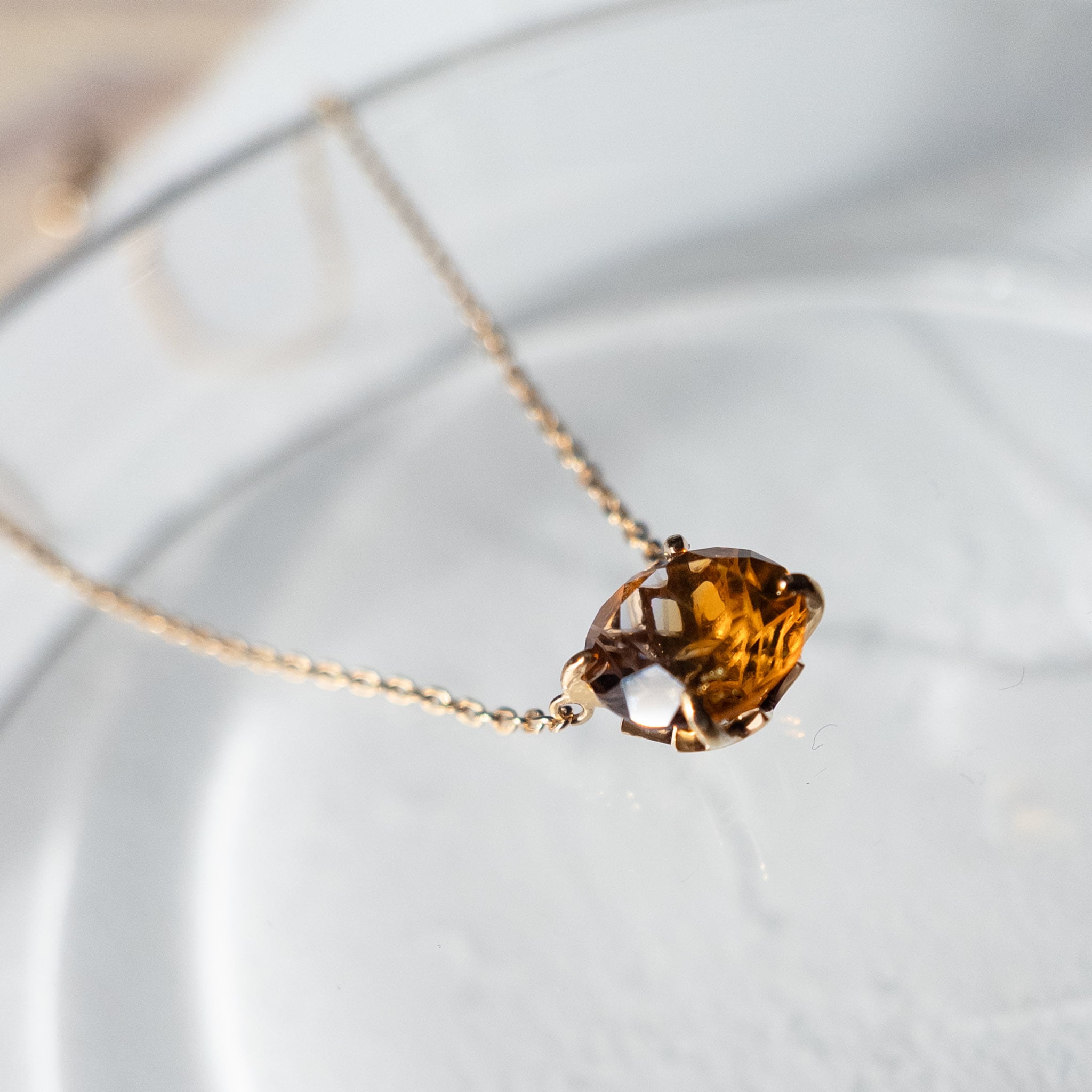 yuiaglassの硝子の宝石をフリージアさんがお仕立てしてくれたネックレスです。